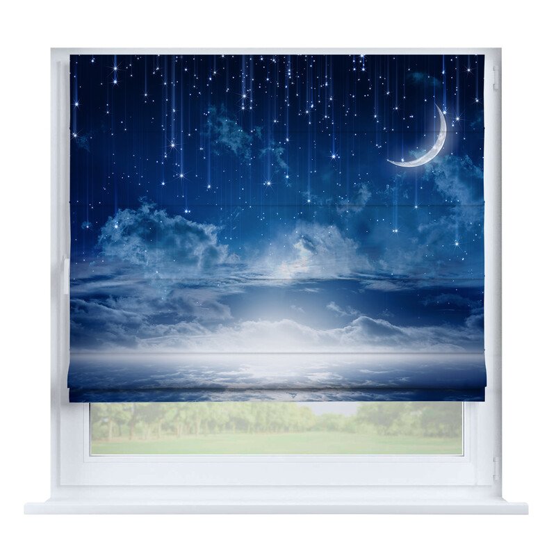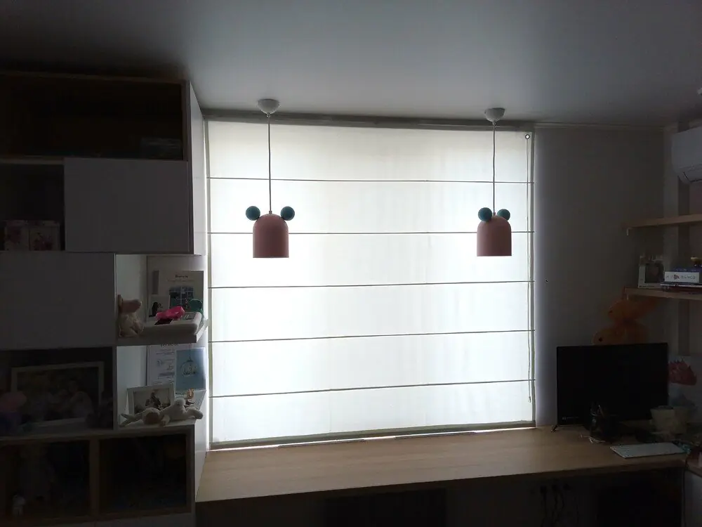 - Если нужна регулировка освещенности в течение суток, то лучше выбрать римскую штору день-ночь блэкаут с тюлем. Путем регулировки высоты двух полотен можно настраивать количество проникающего в помещение света.